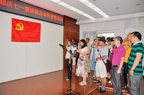 公司党委下设6个党支部,党员140余人,6月下旬以来,公司党委认真策划,以支部为单位,组织了主题党日活动的开展。主要开展五项工作有:一是开展了讲党课及学习讨论活动,支部书记带头讲党课。二是开展了党的知识抢答活动。三是开展了党员重温入党誓词活动。四是开展了以“讲工作态度,弘扬工匠精神”为主题的演讲活动。五是开展了红色革命传统教育活动,各支部分别组织参观了临桂秧塘飞虎队遗址公园、兴安红军突破湘江烈士纪念公园革命传统教育基地。(图为活动照片)